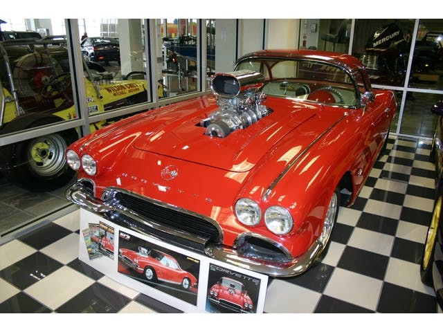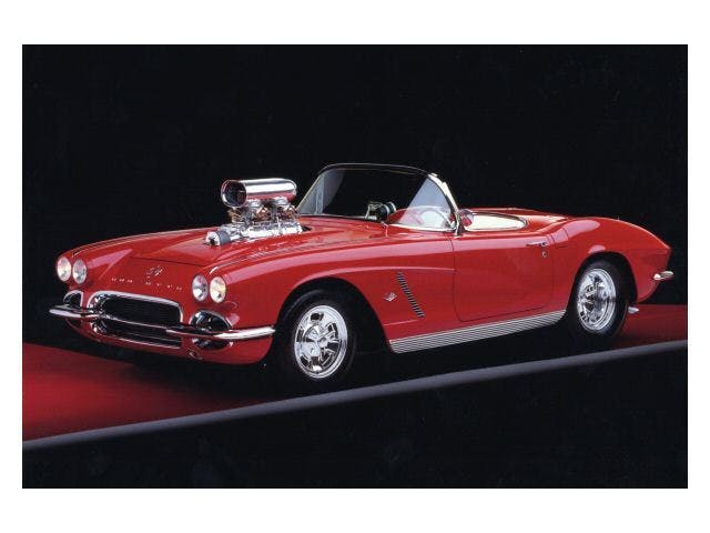 The car for sale is a blown ‘62 Corvette. If it looks familiar, that’s because this car has been featured in countless magazine articles, on magazine covers and was even used as General Motors’ 2002 calendar car. The Corvette was also the feature vehicle of a 2005 Barrett-Jackson auction where its image was used for publicity.