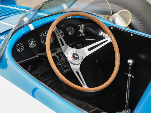 In its current trim, it has a one-off, 377 ci OHV aluminum V8 engine, four-speed manual transmission, independent front and rear suspension with variable-rate coil springs in front, shock absorbers, and front stabilizer bar, and four-wheel heavy-duty, iron-lined, cast aluminum, finned drum brakes.