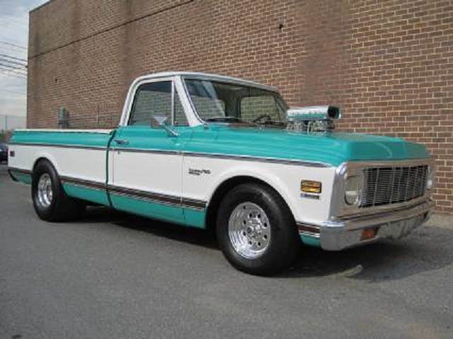 As for the rest of the truck? It is painted a lovely pastel turquoise color that is so very 1960s, sporting a big white bench seat, and a raised hood to accommodate that big-block engine. The only hints at the horsepower this beast has is the blower scoop poking through the bonnet, and the massive slicks at the rear of the truck. Otherwise this could be any well-kept cruiser. This would be one fun ride to the local hardware store, and it can be yours for just $46,900.