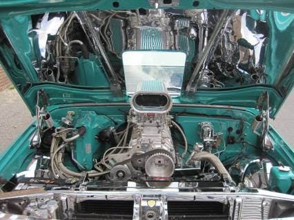 This completely rebuilt engine was put together by the master mechanics at Automasters in Gaithersburg, Maryland, and while specific horsepower figures aren’t quoted, we can make an educated guess. We think 500 horsepower out of this supercharged, chromed-out 454 ci V-8 engine is probably on the conservative side, and there is plenty of torque to go around as well.