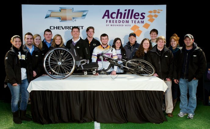 That’s why senior mechanical engineering students at Michigan Tech stepped in under the project name Huskies Helping Heroes. Rather than leaving the hand-cycle design alone, students worked with Chevrolet engineers and school faculty members to come up with improvements to better the bikes. Recently, just prior to the 113th Army-Navy Game, Chevrolet and the students involved revealed their new hand cycle.