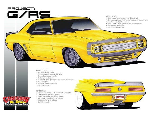 For many years the image of Goodguys Rod & Custom Association founder Gary Meadors’ bright yellow ’32 hot rod has graced the association’s logo, bringing company recognition to many generations of rodders. While there is no plans to eliminate the iconic Ford sedan from the Goodguys emblem, the hot rod and custom car gurus have decided its time to add another iconic car to the nameplate and ultimately, the Goodguys garage. But rather than adding another hot rod to the mix, the association has decided to bring in Project G/RS, an all-out pro-touring ‘69 Camaro. Anyone else jumping for joy?