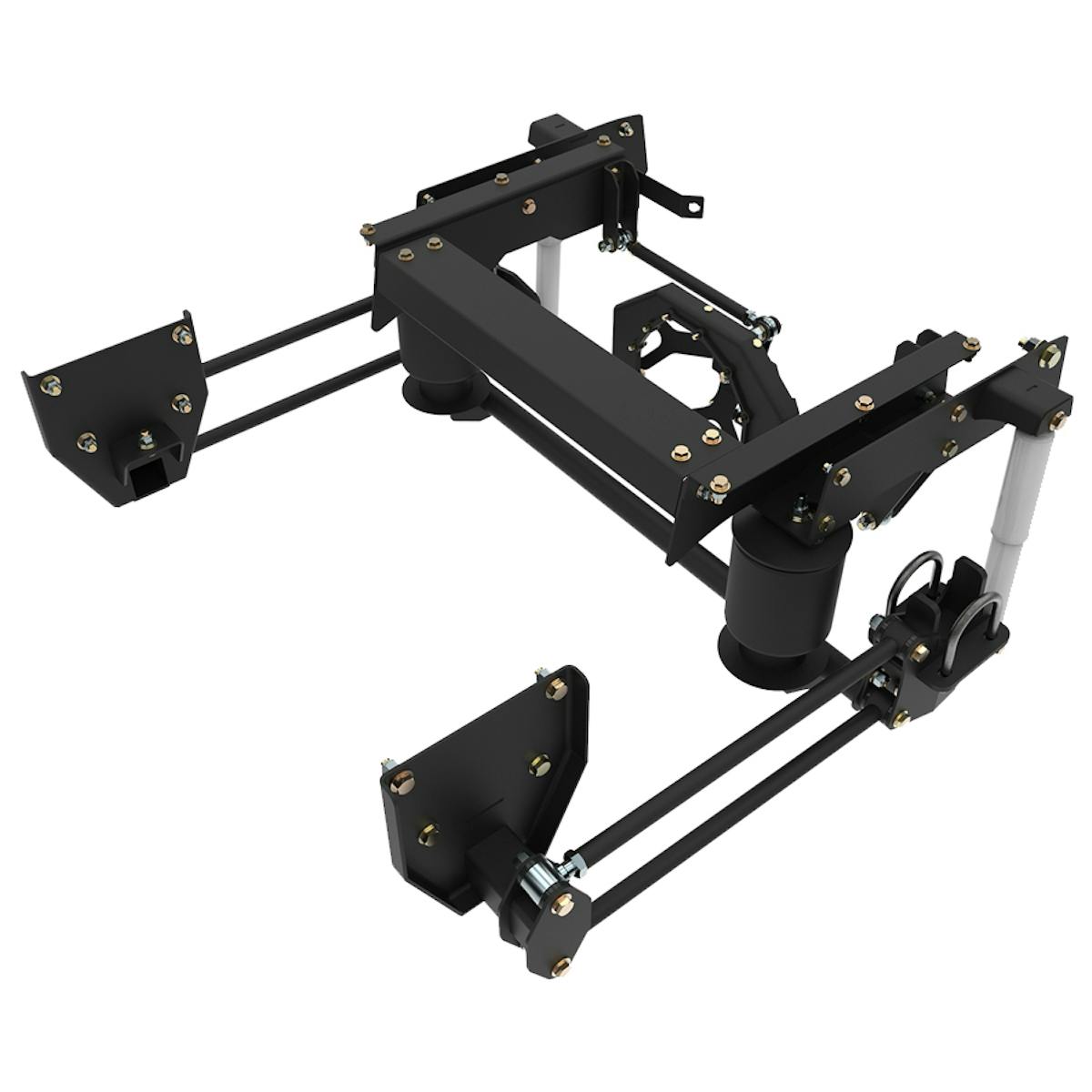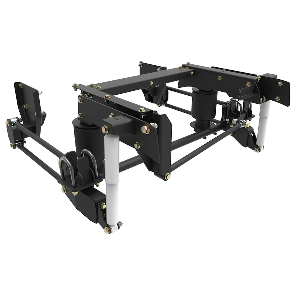 The fabricated crossmember integrates reinforced mounts for all suspension components and when bolted together, completely captures the stock-frame channel to form a larger and stronger section of the frame.