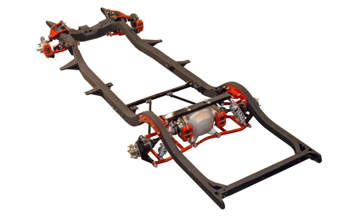 The chassis is also available with identical front suspension components and a PRO-G IRS that is sure to rival the handling of modern sports cars. The PRO-G IRS is a complete hub to hub assembly that includes a Currie third member, Wilwood brake kit, standard- or high-horsepower CV shafts, billet adjustable coil-over shocks and springs and all the necessary brackets.
