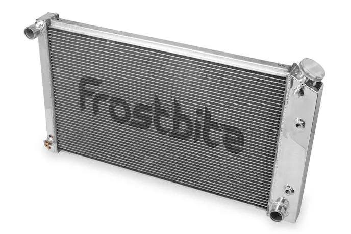 These radiators are available in 2-row, 3-row, and 4-row units for GM, Ford, Chrysler, and platform-specific GM LS Swap applications. Dependable, reliable Frostbite radiators are perfect for trucks, off-road vehicles, drag cars, muscle cars, street rods, and modern-muscle applications up to 1,000 horsepower. They’re available in down-flow, cross-flow, and dual-pass configurations, and all have more cooling fins per inch than can be found on lesser stock radiators.