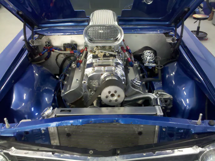 Since it was a roller, that gave Jerry the wide-open option for drivetrain selection. “I wanted a big-block, so I installed a 509 cubic-inch engine,” he explained. The 8-71 blown behemoth features an 8.5:1 compression ratio, thanks to a set of JE pistons and Carillo H-beam connecting rods. Behind that is a Turbo 400 transmission with a reverse and manual-shift valve body connecting to a 9-inch rearend filled with a Detroit locker and 4.56 gears.