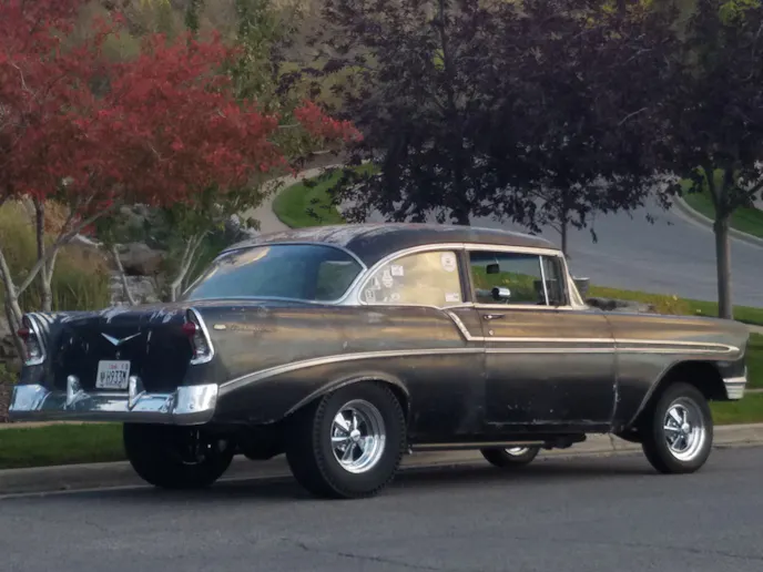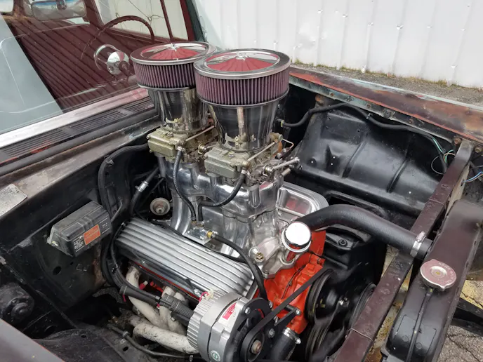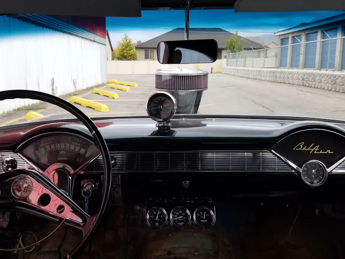 Andy bought this Bel Air shortly after his dad passed away, and put it together with his father in mind. “It was a rolling chassis when I got it,” he explained. He ended up installing a 327 cubic-inch engine with “double hump” heads, a solid-lifter camshaft, and a tunnel-ram intake with twin Holley 450 cfm carburetors. The drivetrain is completed with a Muncie M21 four-speed and a posi rearend with 4.56 gearing.