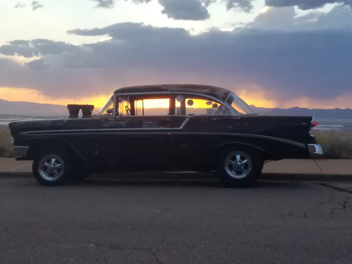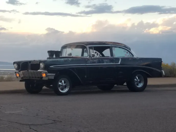 It’s not every day you see a car like this. It runs like a bear, and is wearing a lot of untouched patina — untouched all the way down to the bullet-holes and the cracked window. “I have not done any body work. I punched out a few dents, but that’s it,” detailed the owner, Andy Thompson of West Bountiful, Utah. “The Patina is the way it is. I wanted an old school hot rod that was a Two Lane Blacktop kind of car. I just wanted to build something like my dad would have built back in the day.”
