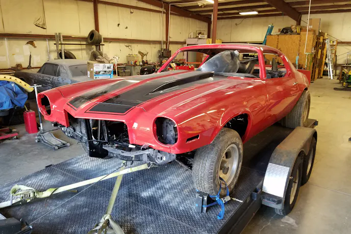 “I struck a deal with the body shop owner and had him put the doors, hood, and trunk lid on the shell,” Craig quips. “We took some tires and wheels with us when we picked it up so we could roll it on the trailer. I remember feeling like the Beverly Hillbillies on the ride home. We had parts piled in the car, the truck bed, behind the truck seat, on the floorboards, and even in our laps to get it all home. That was a long two-hour drive.”