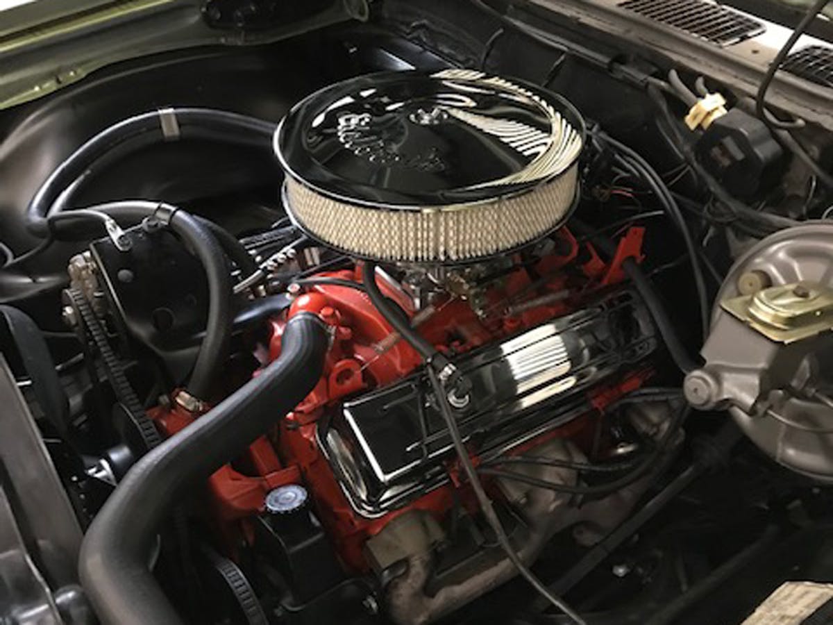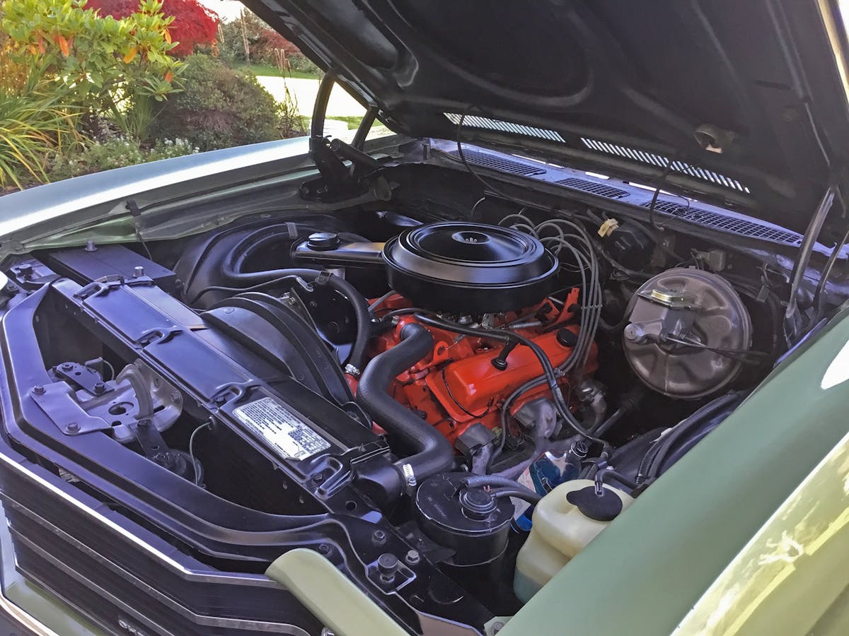 Under the hood, the Chevelle is sporting a 350 that has been upgraded with a mild performance camshaft, dual exhaust, good heads, and a Turbo 350 with a mild shift kit. When I got it, it came with Rally wheels and the factory steel wheels and hubcaps.