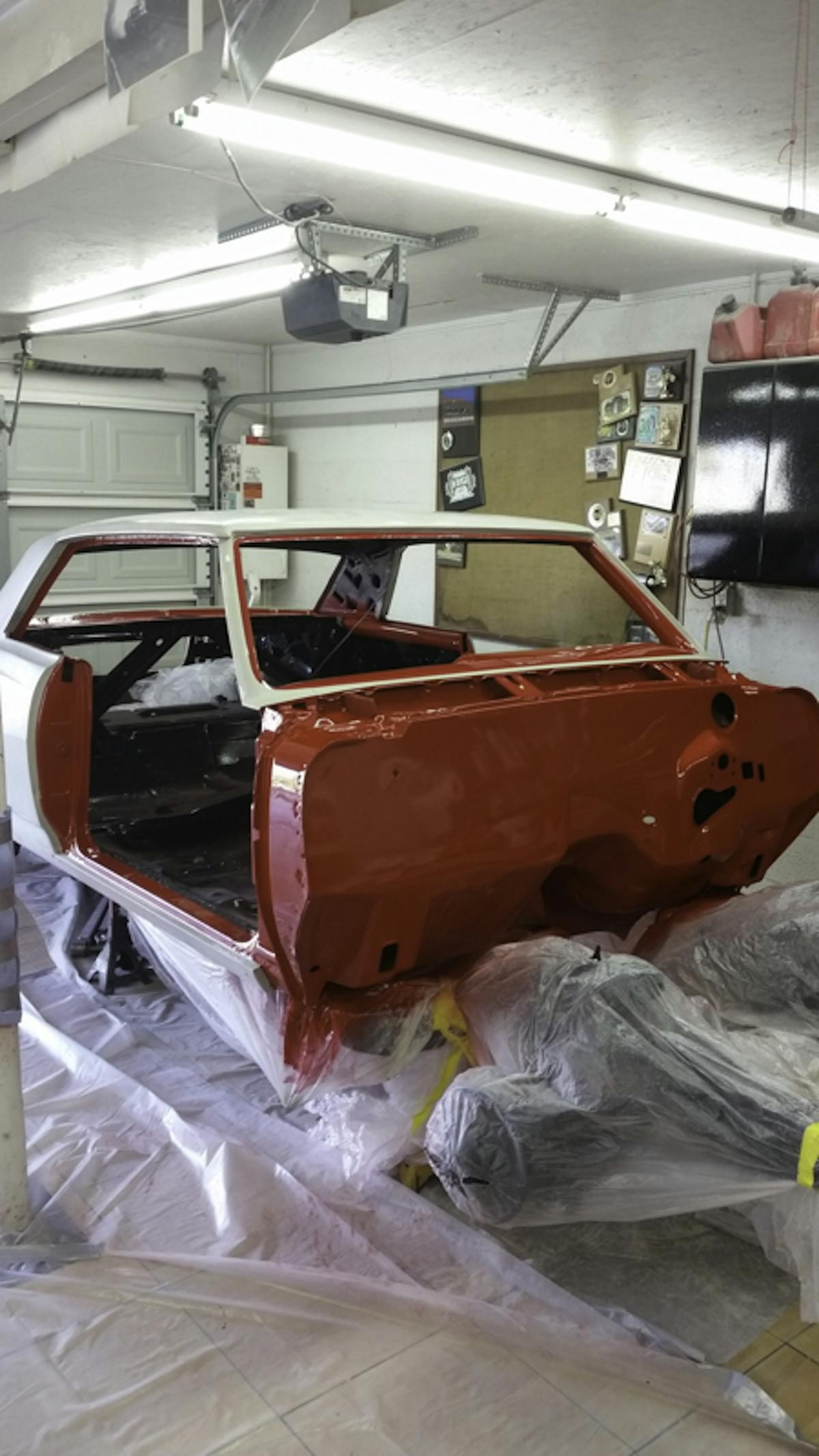 The most difficult part of rebuilding this car for Jason was painting it himself. “Trying to do that work when your legs don’t cooperate, and you’re working with a cane in one hand and a spray gun in the other is quite a process,” Jason detailed. “I actually had to hang onto the garage door track with one hand while I was spraying the roof.” Even with the challenge of trying to paint and hold a cane at the same time, and this being the first car he ever painted, it turned out to be very well done.