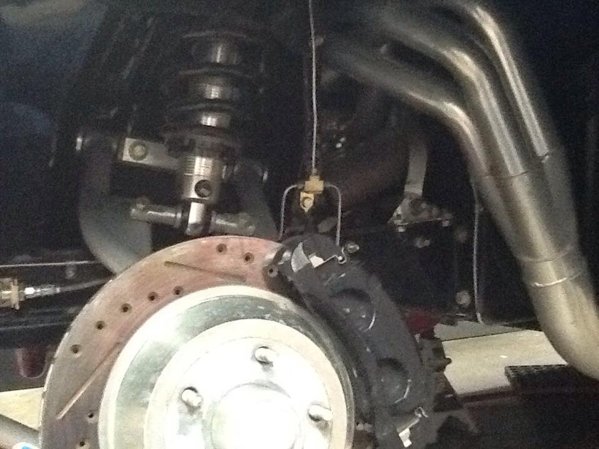 The suspension consists of coilovers and ladder bars supporting the rear, a tubular front suspension with coilovers, and four-wheel disc brakes by Classic Performance Products.