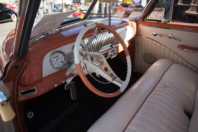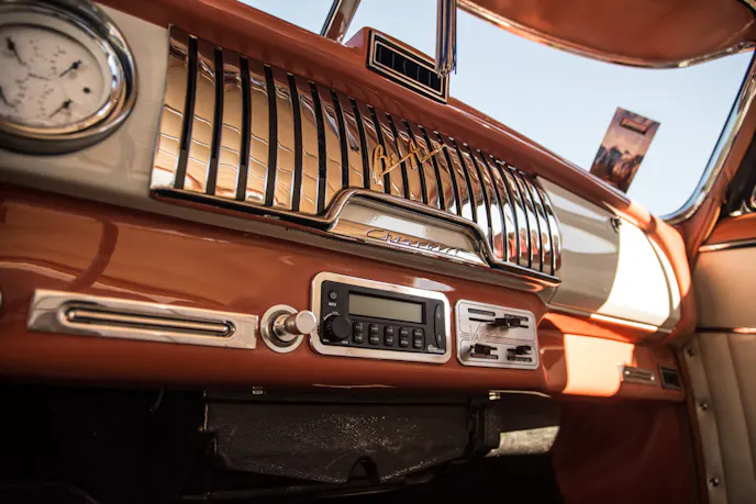 The interior is one place where this car really shines. The dash itself has been extended out to the door posts, and is setup to accommodate the Bluetooth radio and cup holders that Paul added. The modifications done to the dash were a really cool and subtle way to make room for accessories, and to customize the look of the interior.