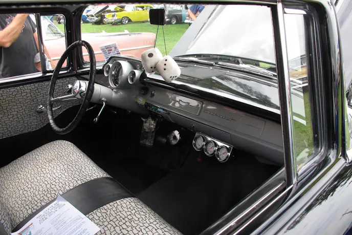 That doesn’t mean that he didn’t have to do anything though. He went through the care entirely, doing everything except for that perfect black and white paint job. That included swapping out the original six in place of the correct year-coded engine and fuel injection set up. The task took a couple of years, but now that the car is finished, Paul explains why it’s good to have a tribute car instead of one of the originals, “I plan to drive it and enjoy it! I drove it 700 miles to attend the Tri-Five Nationals!”
