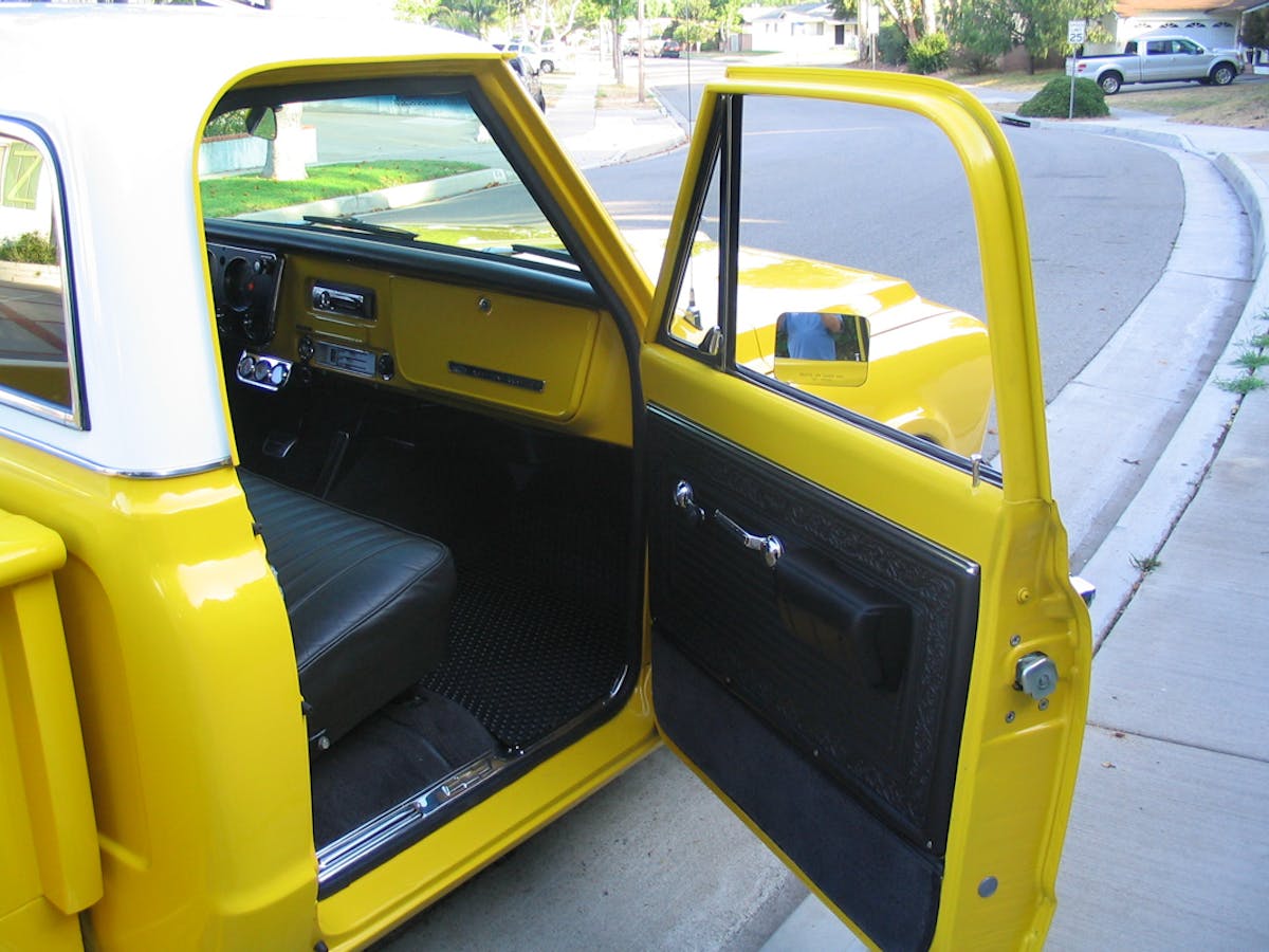 The interior has also been gone over, and features a Grant steering wheel, new door panels, and three-point shoulder harness seat belts. He also has a Pioneer sound system with a CD player. He also added the locking toolbox in the bed so his wife would have somewhere to put her purse when they are at car shows.