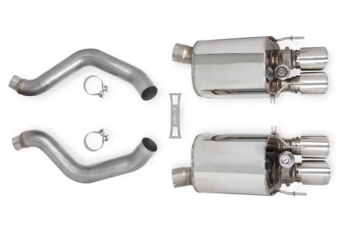 The dual mode mufflers that are available with the Hooker Blackheart exhaust systems are specifically designed for the C6 and C7 platforms as part of a complete exhaust program. When the NPP valve is closed, the mufflers deliver an exhaust note that throaty and pealing to the ear. When the valve is opened, an aggressive race attitude is displayed.