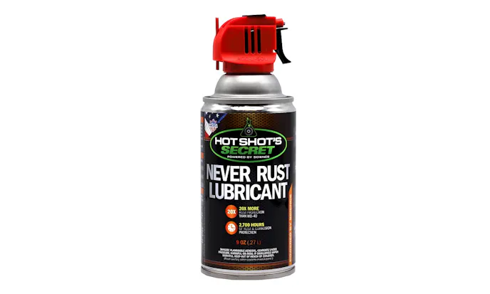 Hot Shot’s Secret Never Rust Lubricant is a new multi-purpose, 100% synthetic spray lubricant that protects metal parts from rust and corrosion significantly longer than competitive brands. Formulated by Lubrication Specialties Inc., manufacturer of Hot Shot’s Secret high performance oils and additives, Never Rust protects any metal surface up to 20x longer than even top brands like WD-40. It is ideal for use on metal nuts and bolts, cables and chains, metal tools, automotive parts, door hinges, locks and much more.