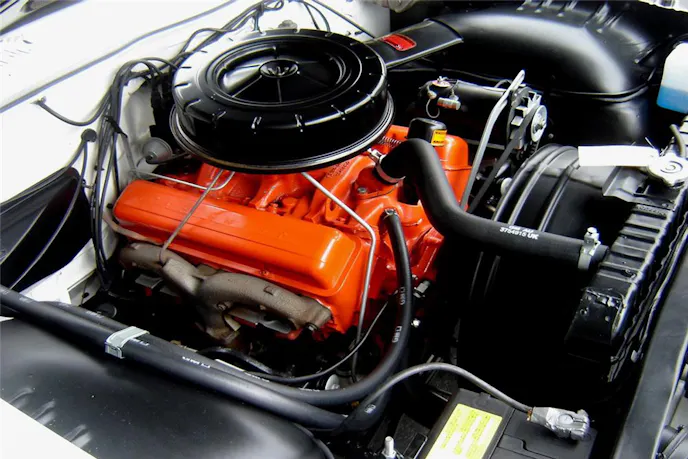The upgrade was a bargain, at just $53.80. The SS option was offered on any Impala, and included Super Sport trim inside and out, chassis reinforcements, stronger springs and shocks, power brakes, spinner-type wheel covers, and one of Chevy’s earliest uses of narrow-band whitewall tires. Finally, the dashboard made use of a Corvette-type passenger grab bar, and mounted to the steering column was a 7,000-rpm tachometer.