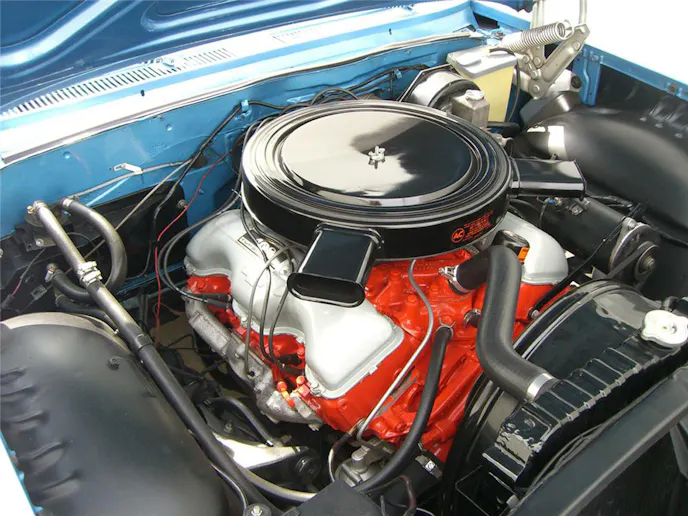 The big news for 1961 was the February introduction of the Super Sport model, and with it came the new 409 cubic-inch engine. This new engine combined a cylinder bore increase from the 348’s 4.125 inches to 4.3125 inches. The stroke was also increased from 3.25 inches to 3.50 inches. Visually, the dipstick location can help differentiate a 348ci engine from a 409ci engine. The 409ci engine had the dipstick on the passenger’s side, and 348ci engine had it on the driver’s side. This isn’t a fool proof though, as the oil pans are interchangeable. At 360 horsepower, the 409 came with an 11.25:1 compression ratio, and a single four-barrel carburetor.