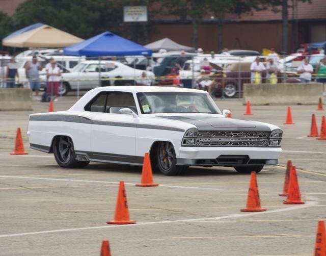 The car’s maiden voyage came Friday morning during the Street Machine of the Year AutoCross competition. Having never been driven on pavement, tension was high in the Roadster Shop camp but anxiety quickly turned to confidence when Innovator streaked to a 35.3 second lap time. It would hold up as the fastest lap in the entire competition!