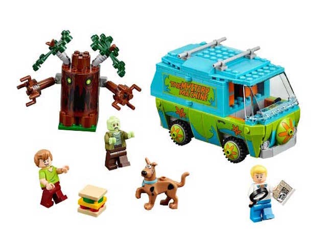 In addition to the iconic van, which will be sporting computer screens, spy glass and other mystery-solving equipment, the set will have a spooky tree, a giant triple-decker sandwich and mini figures of Scooby, Shaggy, Fred and a zombie whose identity the home builders will have to figure out with clues.