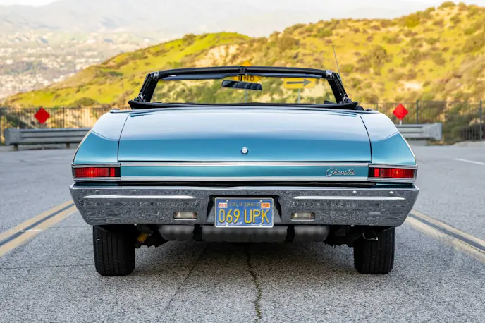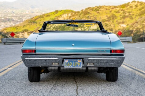 Beyond that, John’s Malibu does have the option of a direct connection to the sun, which can be had thanks to the manually operated black convertible top. Once opened up, the car’s black interior comes into full view, including those bucket seats, console, and horseshoe-style shifter. While the interior (and the rest of the car) is remarkably nice for a vehicle that is over half a century old, there still remains little that would draw your eye if it were in a showroom full of big-block Chevelles back in ’68.
