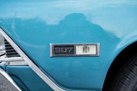 Powered by the lowly, and underappreciated 307 cubic-inch V8 engine, this drop-top has enough power to work its way around traffic without making a scene. That two-speed Powerglide transmission just adds to the ordinariness of the entire package.