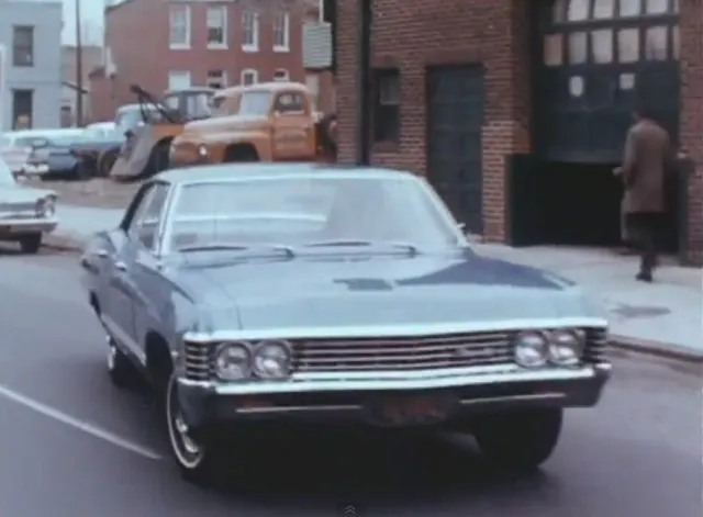 We tag along with a “gang” of car thieves that heist a red ’67 Impala 4-door in broad daylight from a very cool, mid-sixties suburban sub-division. The thug breaks into the car with a coat hanger, removes the key bezel from dash and swaps the pot metal ignition switch with one he’s brought along and drives off. This is good vintage knuckle draggin’ stuff. No protective gloves needed here, just big bare Cro-Magnon hands greasy enough to cover at least 10 cars with fingerprints.