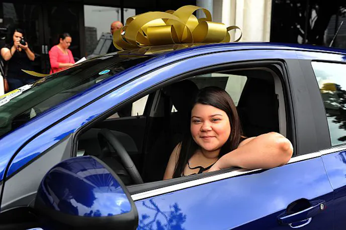 So here is what happened: two graduating seniors, Vanessa Umana of Francis Polytechnic High School and Euri Tanaka of San Pedro High School, were found to have attended every day of school, from preschool to the end of high school. This entered them into a raffle (out of 357 students) for a Chevy Sonic. They won, and now each of them is getting a Sonic. To her credit, Vanessa was an excellent student, apparently leaving with a 4.2 GPA and bound for UC San Diego.