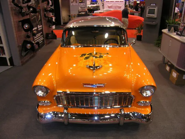 K&N brought out there bright orange two-tone 1955 Chevy, and walked away with a Best of Show award. This 1955 Chevy was sent to House of Kolors for a one of a kind Sunset Pearl paint job with a two-tone gunmetal color for the roof. On the hood is a hand-painted K&N logo that is surrounded by orange flames. Even though this car is an eye-catcher it still packs some punch under the hood. The engine is an all aluminum Chevy 350 Brodix block and cylinder heads. This ’55 is run on all motor with 112 octane fuel. On top of the motor is a K&N air filter, of course.
