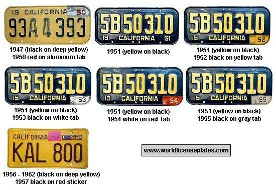 The Legacy License Plate Program will give California collector car owners the ability to license their vehicles using one of three different license plate styles fashioned after vintage California plates. These styles include black lettering over a yellow background seen in the 1950s, yellow lettering over a black background seen in the 1960s, and yellow lettering over a blue background that was available originally in the 1970s and 80s.
