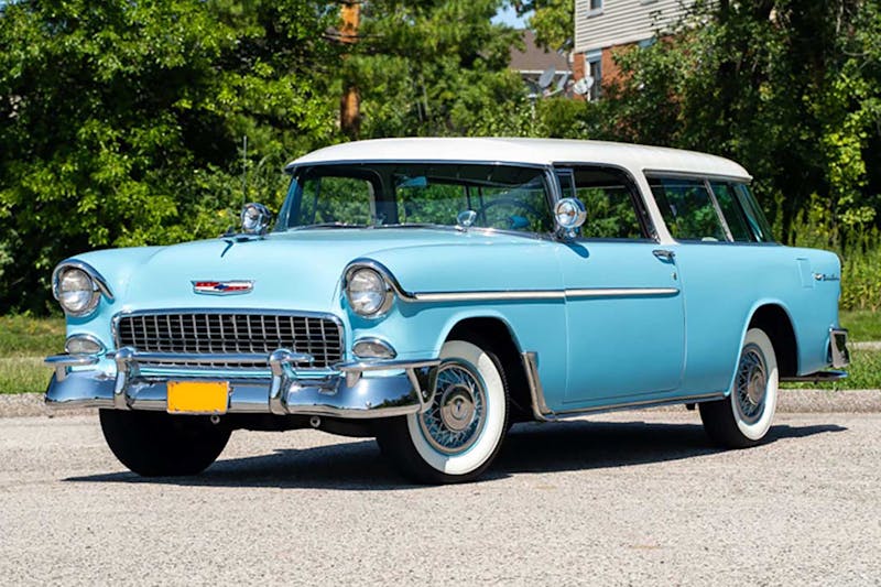Considered the halo model for the Tri-Five Chevy era, this 1955 Chevrolet Nomad has all the features to make a truly premium trim package. As Chevy’s first entry of the “Sport Wagon,” this Chevy Bel Air Nomad features all the powered goods, such as the seats, windows, brakes, and steering. It also features options including factory air conditioning, an outside sun visor with dash-mounted E-Z eye glass, an Autronic eye for auto-dimming headlights, an auto compass, a fender-mounted antenna, front and rear fender guards, and special two-tone paint, consisting of Cashmere Blue and India Ivory. This highly optioned 1955 Chevy Bel Air Nomad is offered as Lot Number F905.