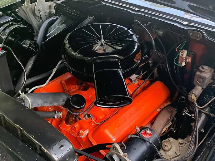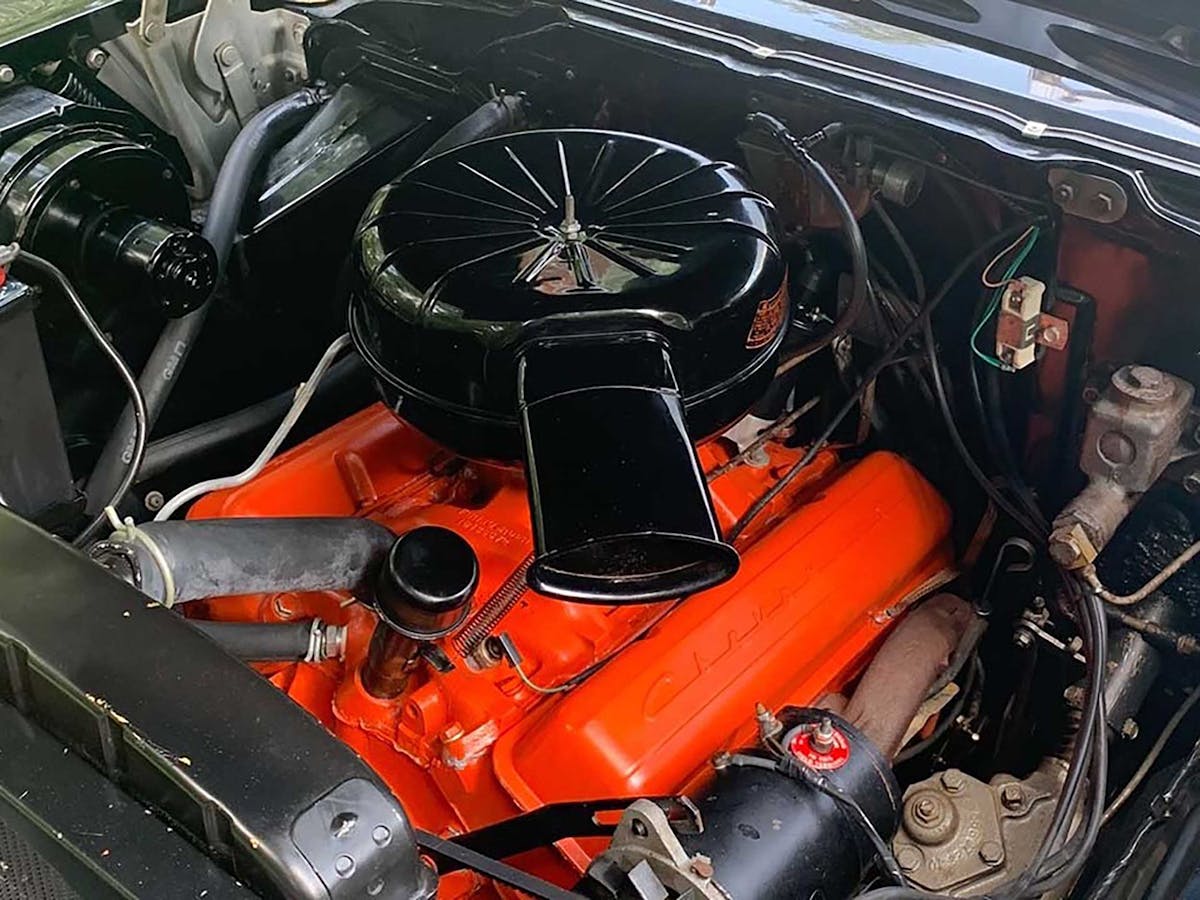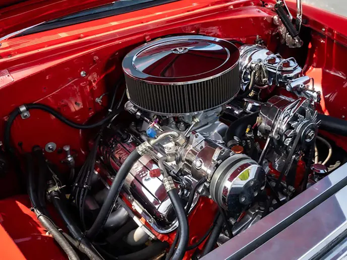The earliest of the Tri-Five Chevy era, this bright red 1955 150-series cruiser has just the right upgrades to make it a fantastic choice for Saturday night cruising. A freshly rebuilt 402 cubic-inch engine gives this car plenty of street-performance cred, and all the additional chrome in the engine bay is just icing on the big-block cake. Modern niceties, such as the electric cooling fans, overdrive transmission, power steering and brakes, and aftermarket air conditioning keep the smiles per gallon ratio pegged for the entire ride. Listed as Lot Number F364, this ’55 Chevy is sure to become someone’s favorite ride.