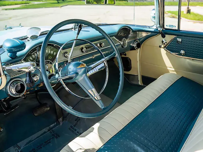 Cruising in a classic Chevy can get no better than doing so in a classy 1957 Bel Air convertible. You’ll likely never use the under-dash air-conditioning, thanks to the ability to drop the top and drive in this blue beauty. Simply put the automatic transmission in drive and enjoy the miles of open-air cruising in your new Bel Air Chevrolet! Check out Lot Number S968 on Saturday for your chance to own this beautiful blue cruiser.