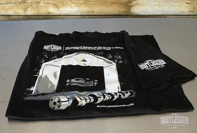 - Bootlegger Camshaft (any part number), Lunati Lifter Set, Bootlegger Wooden Cam Box, Two Bootlegger Shot Glasses, Bootlegger T-shirt, Lunati Banner, Lunati Hat