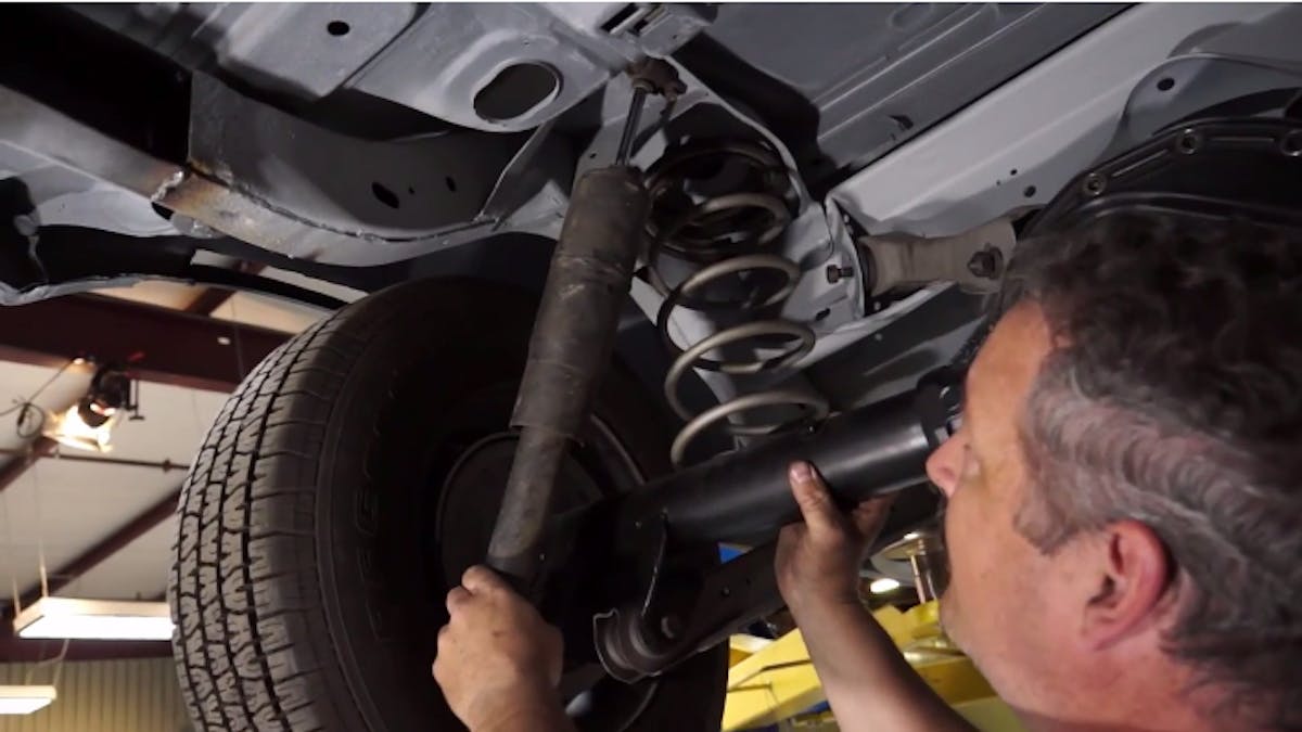 To keep the rear differential in place and ensure that the springs in the rear of the car don’t get stretched or compressed out of shape, the crew of The Build opted to re-install the old shocks just for the time being. While the shocks will eventually be replaced with something a bit more substantial, the old pair make for good mock-up devises in this case.