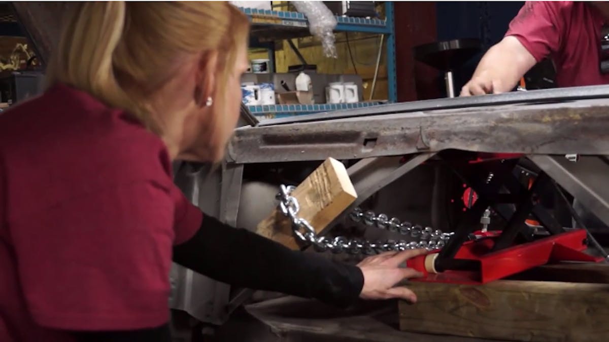 With a crank and pulley system, a handful of American Modern crew members wedge, pull and massage the rear package tray back into place, or at least as close as they can get it using substantial machinery. Once the package tray is generally the right position, a bit of fine-tuning and minor massaging will be needed to get the tray squared away into exactly the shape the crew of The Build is looking to get.