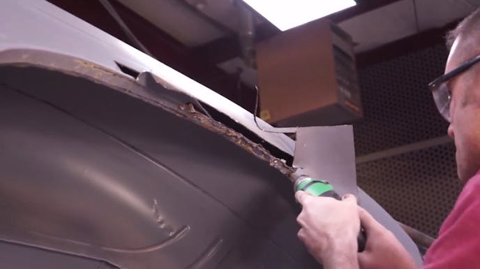 Now instead of just patching the quarter panel, the crew will also have to patch the wheel well, fitting the car with a good enough surface to weld the patch panel on to the rear quarter.