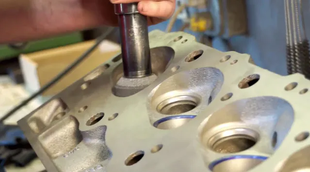 Now that the guides for the cylinder heads have been machined and the new valve seals fit properly on the engine, it’s time to move forward with more machining work. This time around, it’s the valves that are getting worked on, as Smyth Automotive cuts 30, 45 and 60 degree angles into the valve seats to give the engine better air and fuel flow.