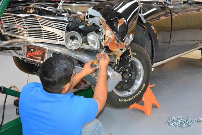 To get the project rolling, Claims Specialist Rick Drewry headed the overlooking and tear-down of the entire car. As luck would have it, many components on the Malibu were good enough to be saved, whether they were in useable condition or in need of minor repairs. One thing that couldn’t be salvaged, however, was the frame. For this, American Modern turned to a donor GTO that had suffered complete damage in a fire.