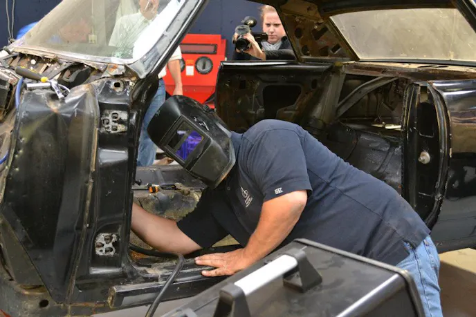 When we first introduced you to the American Modern project car, it was in very bad shape. The car came into the possession of the American Modern crew after it had had an unfortunate run-in with a brick wall, messing up the car’s front end, pushing the engine out of whack and tweaking the rest of the drivetrain. The car also had some other body damage, interior work and other odds and ends that needed to be tackled.
