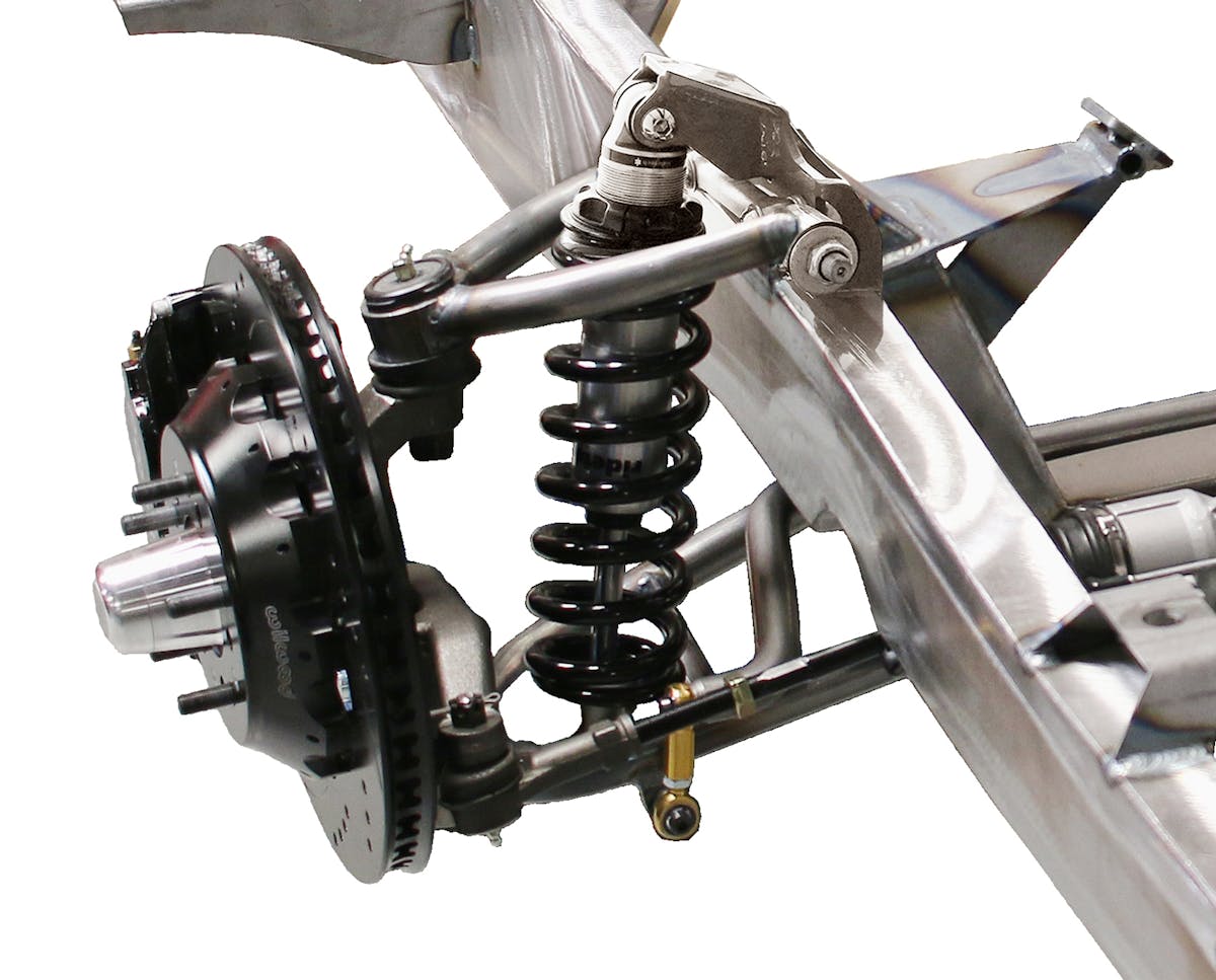 From there, TCI Engineering has taken what they learned from a decade of autocross and road race involvement and integrated that technology into a new Pro-Touring IFS. TCI’s new chassis uses the company’s custom-designed spindles with bolt-on steering arms. This allows the end user to enjoy maximum-performance aspects of improved suspension geometry. Those include camber gain, bumpsteer, Ackerman angle, scrub radius, kingpin inclination, instant center, and more.