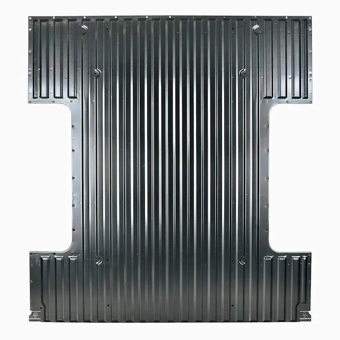 UPI’s bed floor for the 1967-72 Chevy and GMC Fleetside shortbed truck is stamped from 18-gauge steel, with all of the original contour details. The floor panels have heavy-duty 14-gauge crossmembers spot-welded in place. The floor panel features precision punched mounting holes for easy front, side, and wheel well installation.