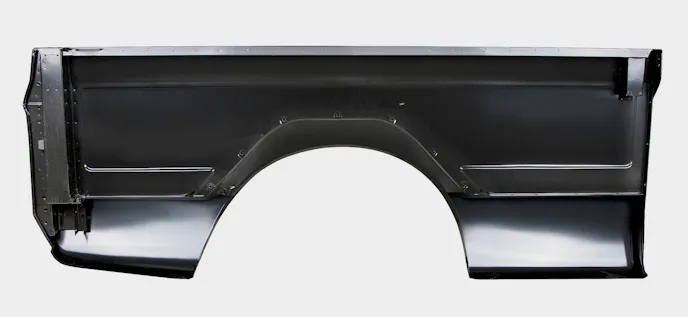 The parts can be combined to make a complete longbed-to-shortbed conversion, and are manufactured using high-quality 20-gauge steel, They are stamped with all of the original contours and detailing. The panels come with a spot-welded, 17-gauge inner liner and include the rubber tailgate bumpers. These unique panels also feature welded-in threaded-nut inserts for the wheelwell, tailgate, pivot trunnion, striker, and tailgate support. They also have side-marker cutouts that can be used on 1968-72 trucks.