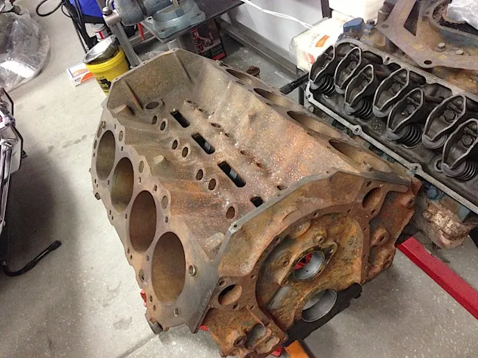 Even though the original engine was replaced under warranty, it too was yanked. After checking the block numbers, the new owner verified that this is a '72 year, 454ci big-block with a 4-bolt main, steel crank, dome top pistons and came with the correct cylinder heads.