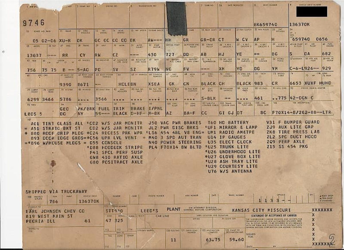Of course, that’s not all either. The original factory-perfect, build sheet came with the purchase as well. The build sheet shows that this particular Chevelle came with the infamous cowl hood, chrome valve covers, low profile intake manifold and Holley carburetor.