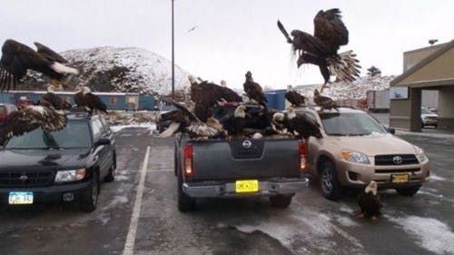 - Bald eagles are so patriotic that they target import vehicles. Yes, we know that Nissans are assembled in America. The eagles just don’t know that.