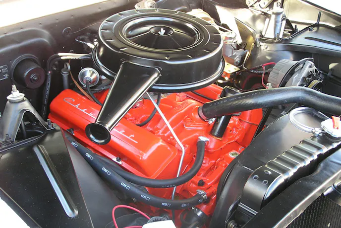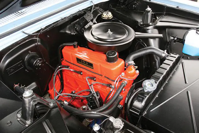 Behind that grille, the 153 cubic-inch four-cylinder engine was still standard, but the Hi-Thrift 194 cubic-inch six cylinder engine was available with 120 horsepower. Another option was the top-shelf six cylinder engine, the Turbo-Thrift. This engine carried 230 cubic-inches, and 155 horsepower. But, the big news for this year was the Chevy II/Nova now had a V-8 added to the option list. This new 283 cubic-inch V-8 engine came in two versions. One delivered 195 horsepower, and the second, gave consumers 220 horsepower. The choice of a two or three-speed automatic transmission was available, and the four-speed manual transmission was added to the options list.