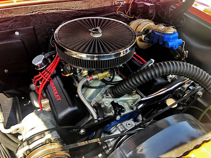 Gordon knew the 283ci small-block was not going to satisfy his craving for power, so a 383ci mill was built. The project began with a four-bolt-main block fitted with a cast crank and MAHLE pistons and connecting rods to create a 9.0:1 compression ratio. An Isky camshaft actuates the valves in the Edelbrock heads. The Saginaw gearbox was also removed, and 200R4 overdrive takes its place.