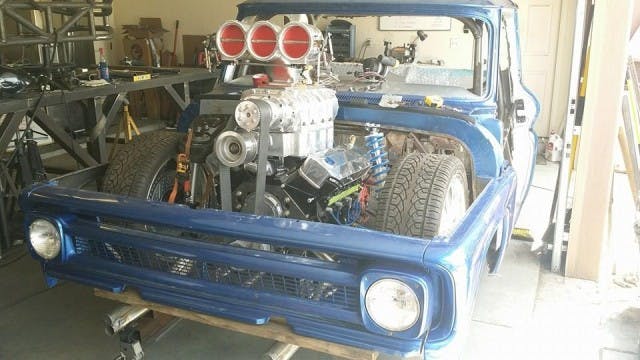 The 1964 C-10 is slated to debut at the 2014 SEMA tradeshow in Las Vegas later this year. Currently the future drag truck sports a 588 big block Chevy with a 12-71 Littlefield supercharger on top. The Overkill crew reports that the engine logged 1,687 hp and 1,666 lbs/ft of torque on a Superflow dyno under 2-inches of load.
